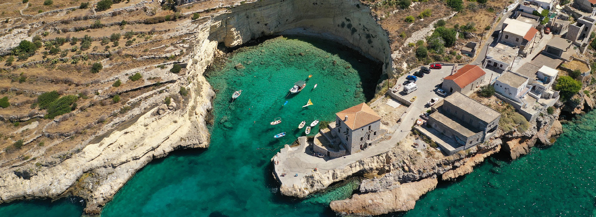 The port of Areopolis, one of the most beautiful settlements in the region, could also be described as the capital of Mani. It has beautiful cobblestone streets, iconic tower houses, but also a rocky beach. Taking a walk in Limeni, you can enjoy refined flavors and traditional recipes in the tavernas on the beach. Noteworthy, the stone-built church of Agios Sostis, where the sea meets the wild rocky landscape of the area and the beauty is rare.