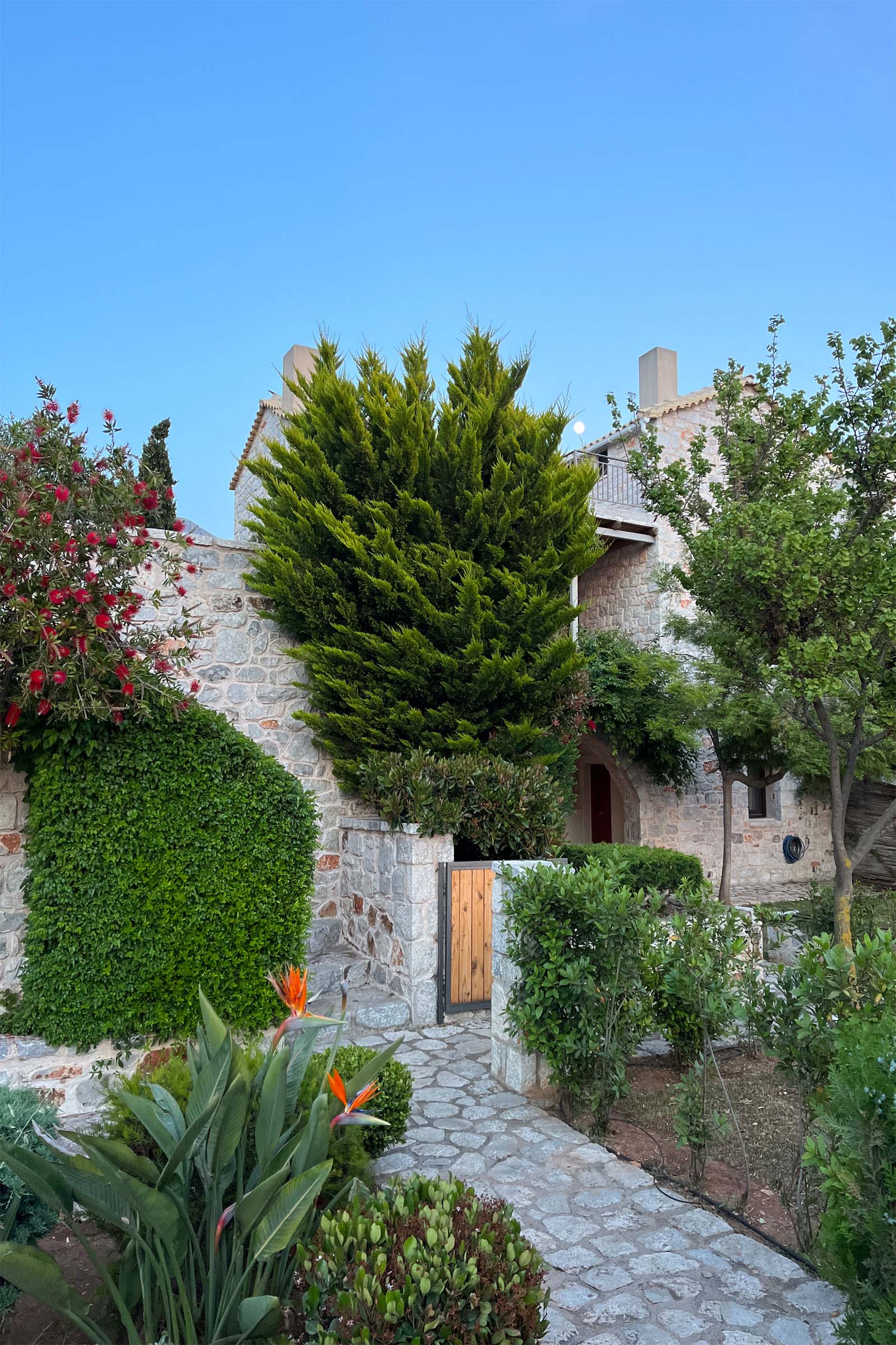 Comfortable, modern and beautifully built residences, in a lush, well-kept garden, masterfully placed in the lush land, under the shadow of Mount Taygetus. Here, in the capital village of Mani, in Areopolis, with the traditional preserved monuments, the paved street, the old town and the beautiful square. A whole world that advocates for the uniqueness of moments, away from the burden of everyday life and stress.